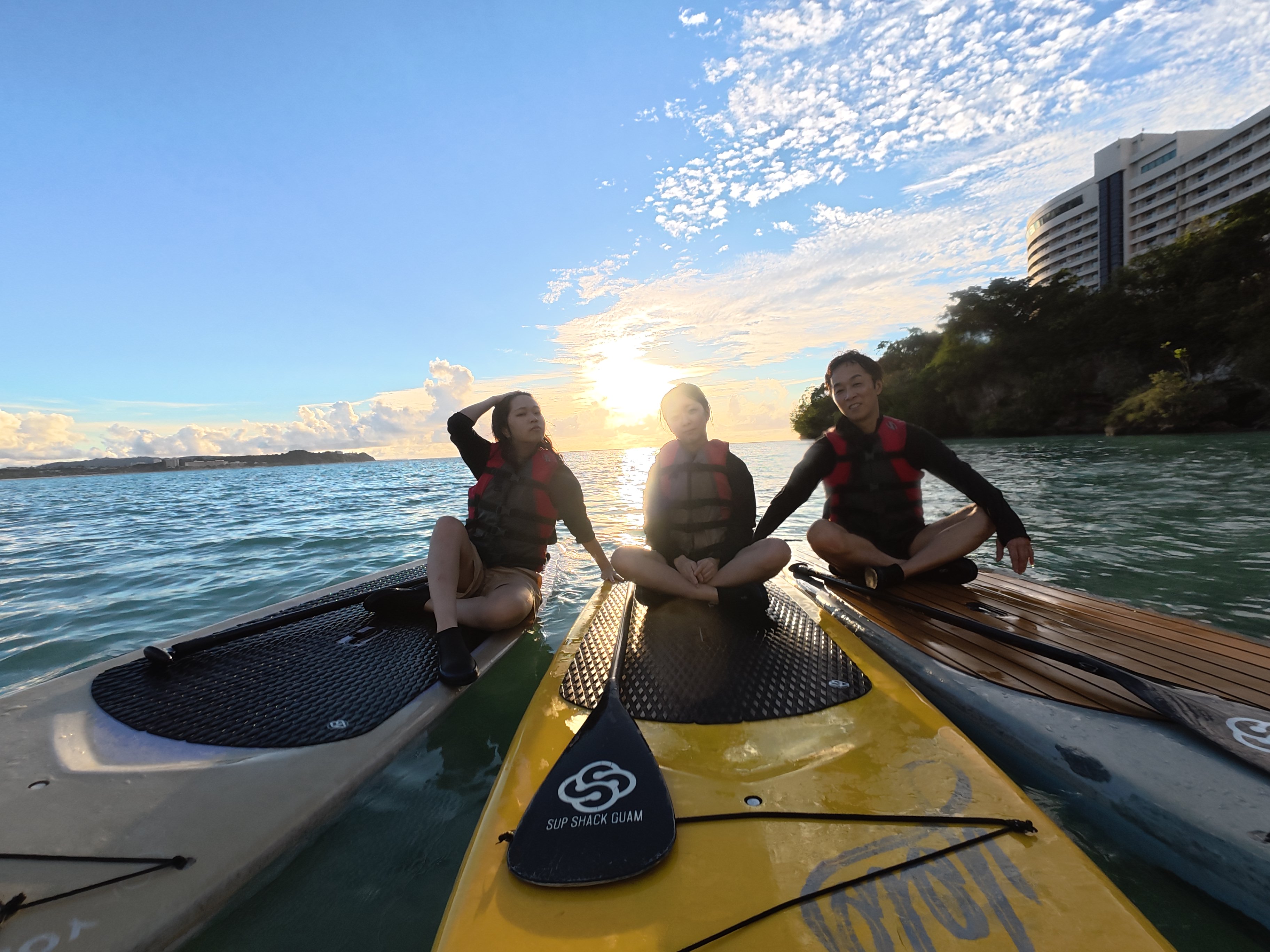 SUPで目の前に広がる夕日を見ながらサンセットクルージングしてみませんか?日中の強い日差しを避け、夕方の涼しい時間を狙ってツアーをおこないます。一日の終わりに地平線が夕日に染まる様を堪能して下さい。誰にも邪魔されない究極の癒しの時間を味わってみませんか? SUP(サップ)とはスタンダップパドルボードの略でハワイ発祥の新しいアクティビティーです。浮力のあるボードの上で立ちパドルで漕いでクルージングを致します。 子供かシニアまで楽しめるマリンスポーツとして人気急上昇中!最近ではSUPヨガなども流行ってきており、体幹を鍛えるエクササイズ効果も魅力の一つといわれています。是非グアムの綺麗な海をSUPで楽しんで下さい。 大変人気のツアーとなっておりますので、要望欄にツアー参加日の第2、第3希望もご記入頂けると予約が取りやすくなります。 *最小催行人数2名(4名以上で参加ご希望の場合は、お問合せください。) OCEAN FREAKは、グアムのプライベート専門マリンスポーツのオプショナルツアー会社。グアムの海を知りつくした現地スタッフがあなたをサポート!日本語で説明を受けた後、しっかりと練習するので初めての方でも安心してお楽しみいただけます。ご家族連れ・個人・グループなどで是非ご参加ください。 主催:Ocean Freak